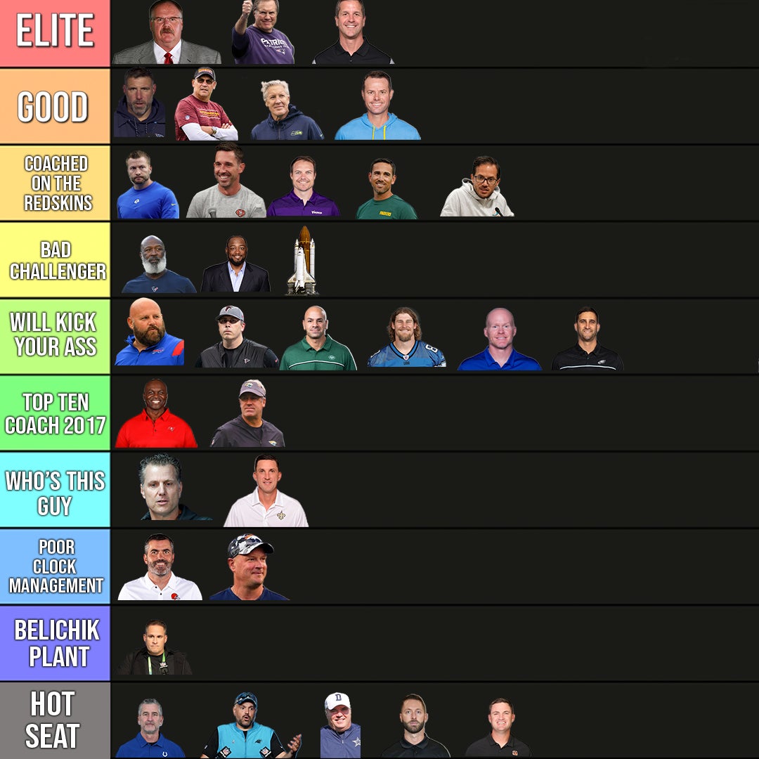 Here are the rest of the official NFL head coach rankings as created by our tier-god PMT memes: