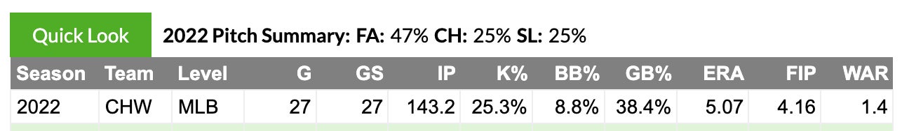 If the White Sox do it right (lol), the rotation will once again feature Carlos Rodon next year, as he's the best FA on the market. A Cease/Rodon/Lynn/Gio/Kopech/Depth rotation would be pretty fucking good to enter 2023 with. Then you can bring back Cueto or whoever else as depth for the inevitable trips to the DL. I'd also have Crochet in Charlotte stretching out his arm once fully back from TJS.