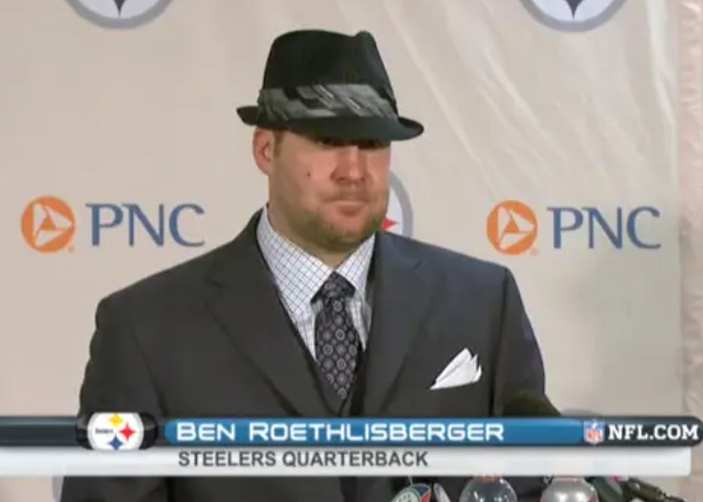 So cool i guess the four hours of film hes been watching this week is gone in 60 seconds and the french connection. There are alot of QBs in the NFL who wake up one day and say to themselves "I'm a fashion guy now. Im just really into fashion. Wearing clothes is a passion of mine" and then they proceed to make themselves look like when you put a silly hat on your dog and try to take a picture of it before it takes it off because its uncomfortable. Putting this up there with other two mainstays of the genre- Film Noir Big Ben, and Mumford and Sons Carson