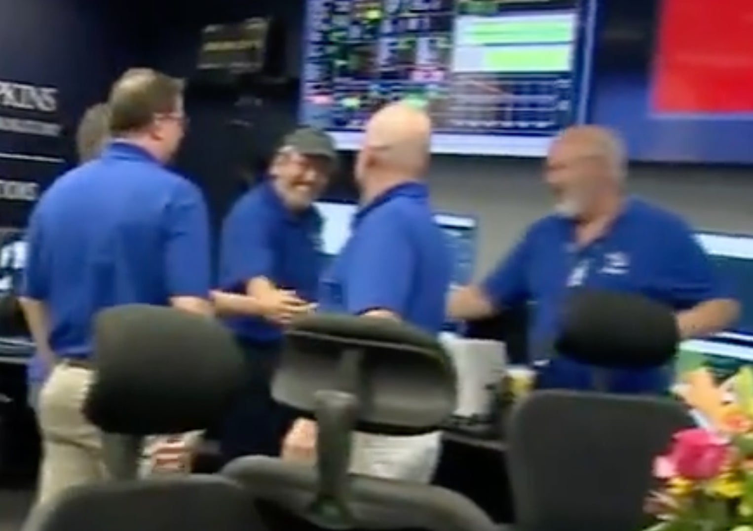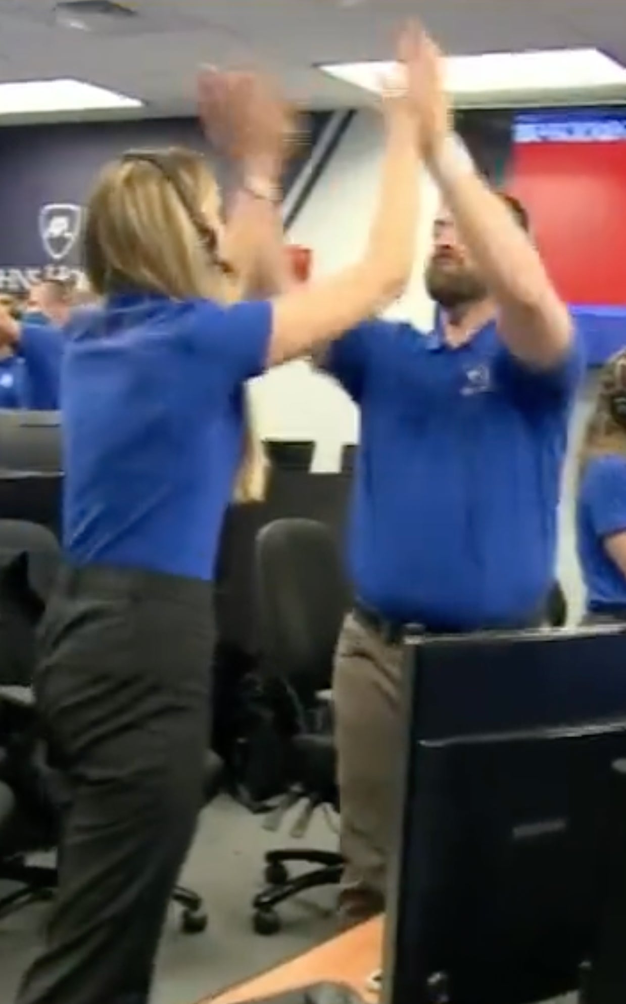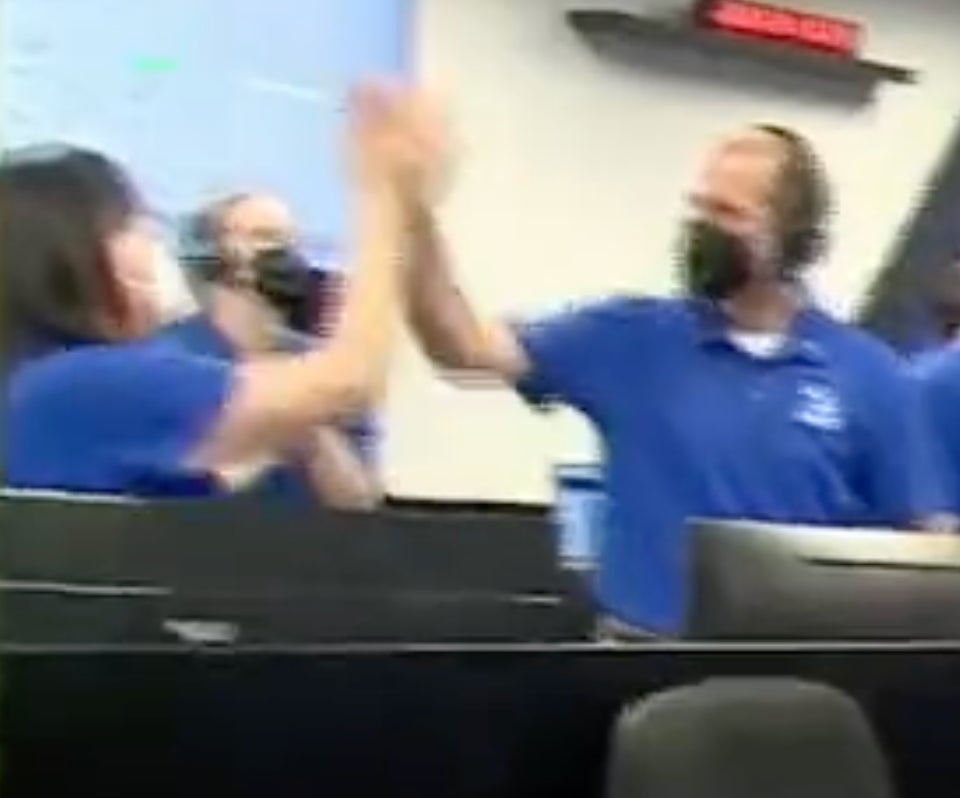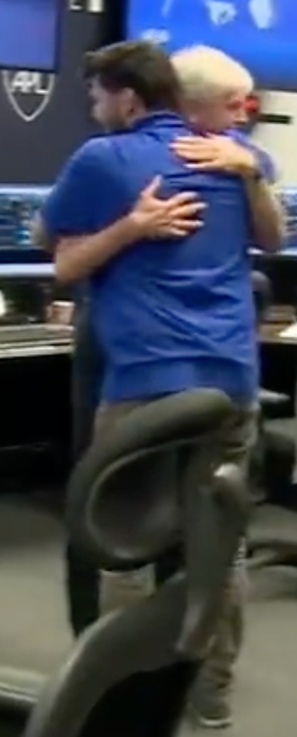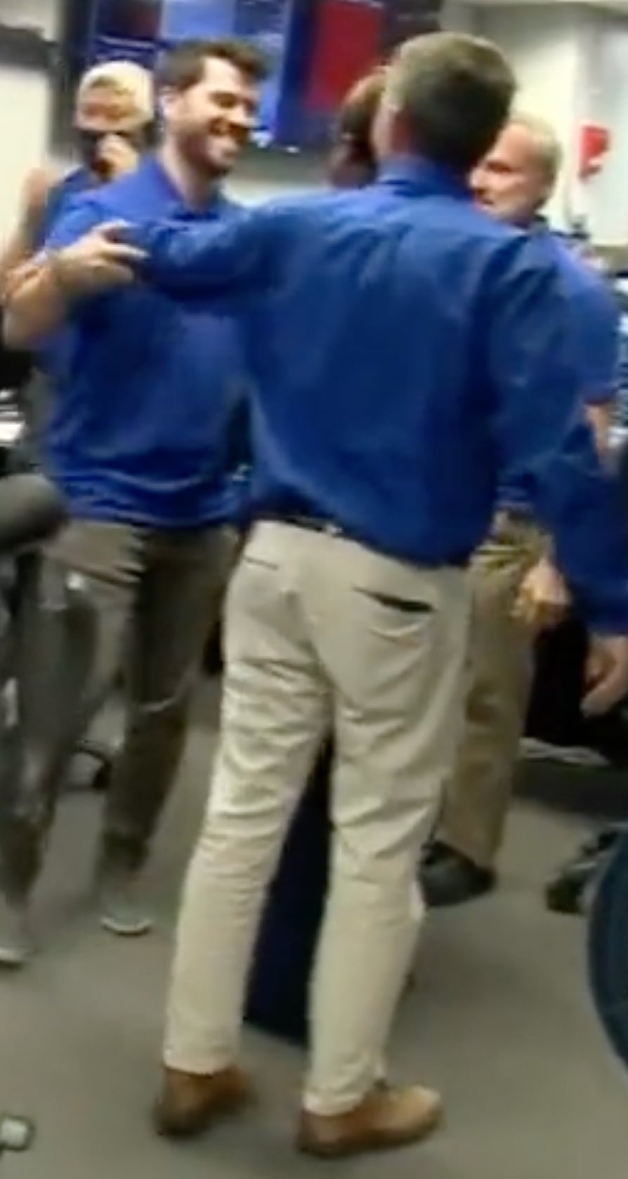 However the big story here isn't NASA pulling off another win since I feel like they are constantly stacking W's. It's the post victory celebrations that are on display after God knows how much math and science using figures in equations my common man brain couldn't comprehend let alone solve.