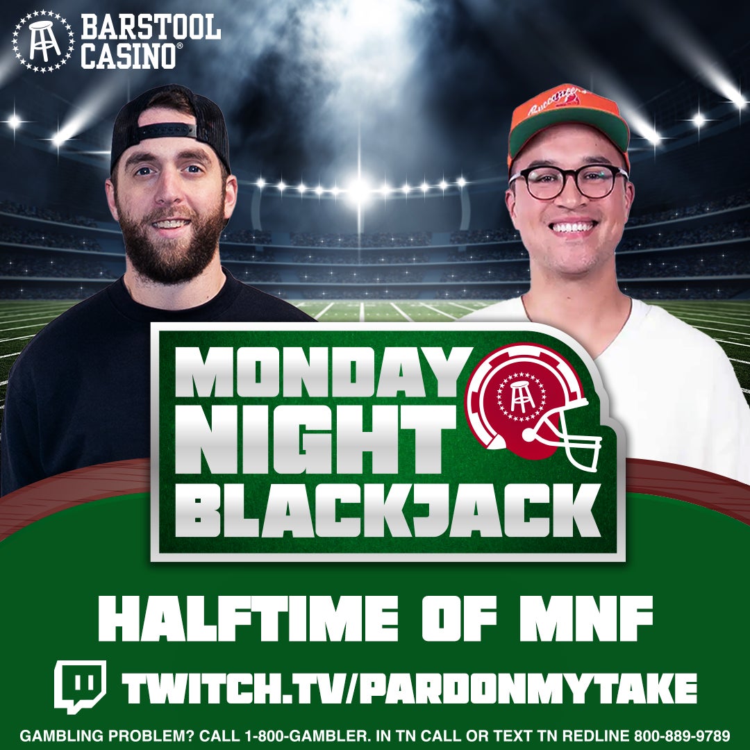 And tonight is Monday Night Football, which means, we've got Monday Night Blackjack at halftime. Join Hank and myself during intermission at Barstool Sportsbook - YouTube and if you're in New Jersey, you can play at a table with us! See you there!