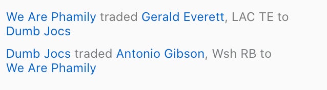 As for Marisnick, he will now own Antonio Gibson and Brian Robinson, so he'll have a good hold of that team's backfield. With George Kittle as TE1, it didn't make a ton of sense to carry a second TE. Marisnick stayed unbeaten after handing Manny Machado's squad over the weekend.