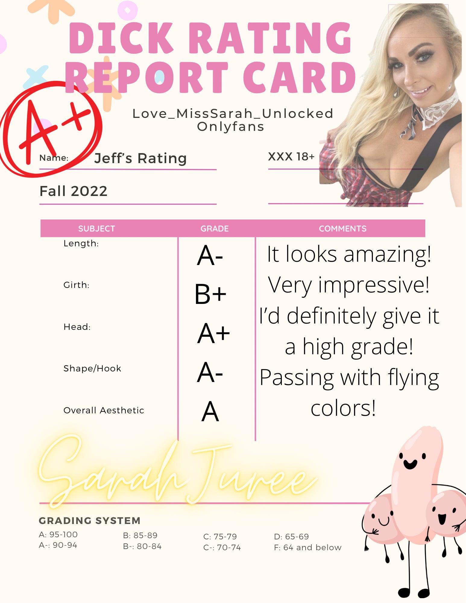 She literally sends you a personal "report card" and basically your dick with five key sections below, each section gets a letter grade and then a "FINAL GRADE"