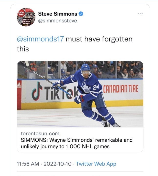 Hockey Media's Biggest Hack Steve Simmons Gets Dragged By Wayne Simmonds For Being A Dipshit Yet Again