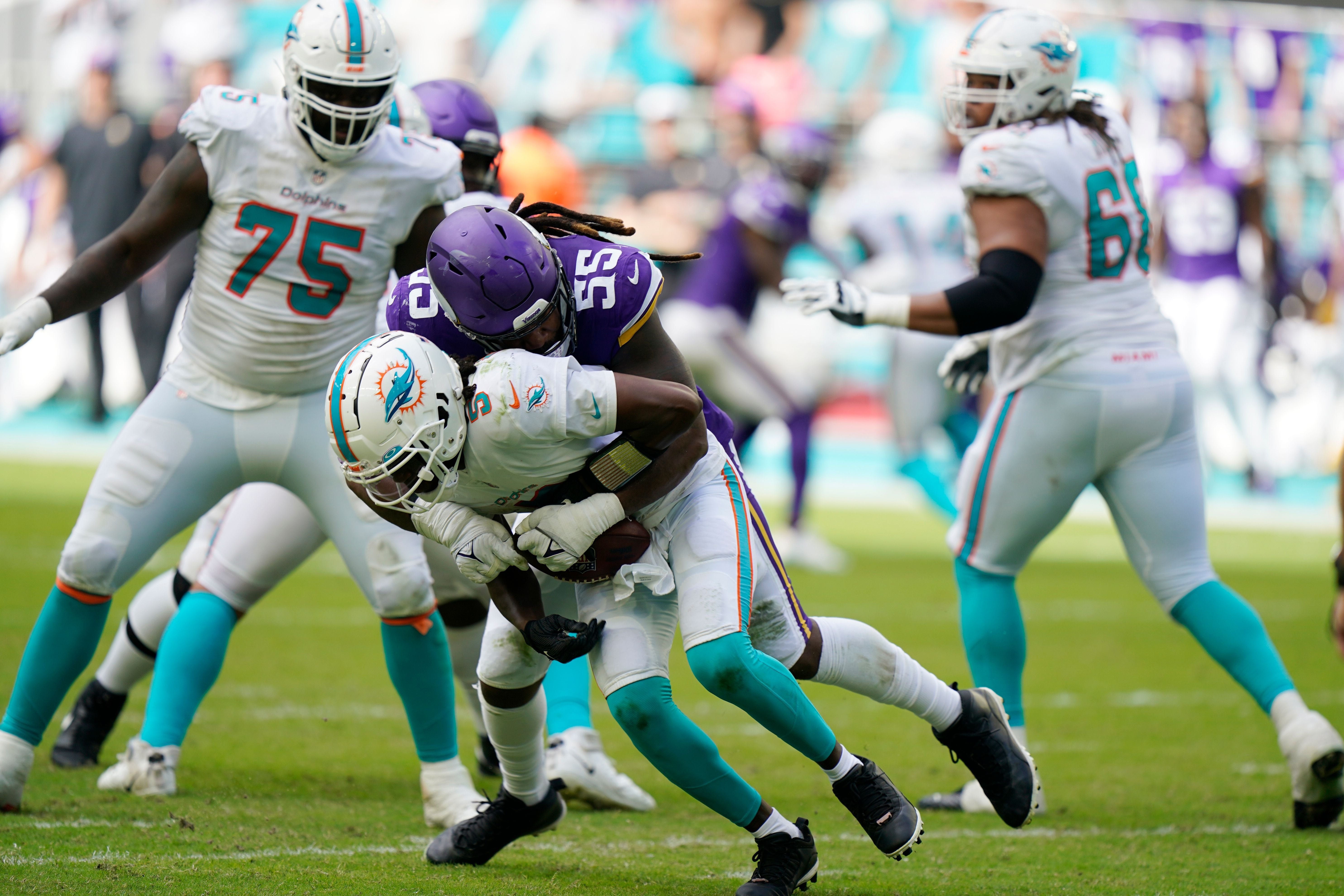 There would be no scoring in the third quarter, but the Vikings extended the lead to 16-3 as Adam Thielen caught a two-yard pass from Cousins. The Dolphins got back in the game, as they had their best drive of the day ended with a Mike Gesicki four-yard catch. After a three-and-out, Miami had a chance to take the lead, but Jaylen Waddle fumbled after making a first down catch, letting the air out of the building. The Vikings sealed the win with a 53-yard run by Dalvin Cook, adding a two-point conversion.