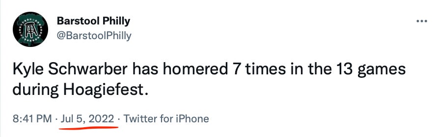 For some quick context, during Wawa's annual Hoagiefest this past summer (which ran from June 20 to July 31) Kyle Schwarber was on an absolute tear. He was a home run machine. And midway through, the fellas running the Barstool Philly account took notice. Hoagiefest = Homers?? Coincidence? They thought no.