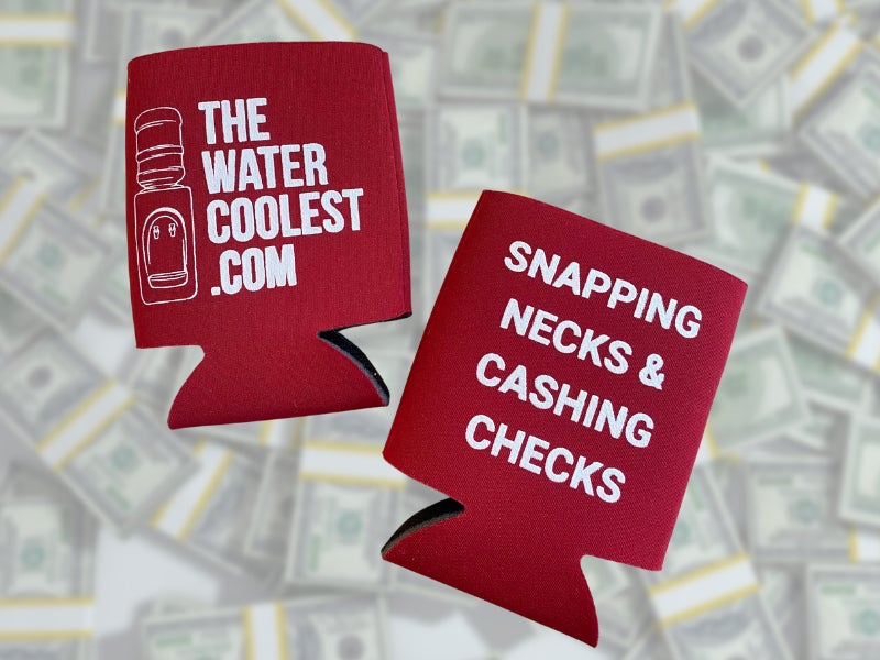 While discussing the addictive nature of energy drinks (recession proof!) I remembered that I was sitting on thousands of The Water Coolest koozies (friendly reminder: Barstool acquired my newsletter, The Water Coolest, just about a year ago. Prior to the deal we gave away koozies as part of a referral program. And, well, let's just say I spent like 25% of our annual marketing budget on koozies).