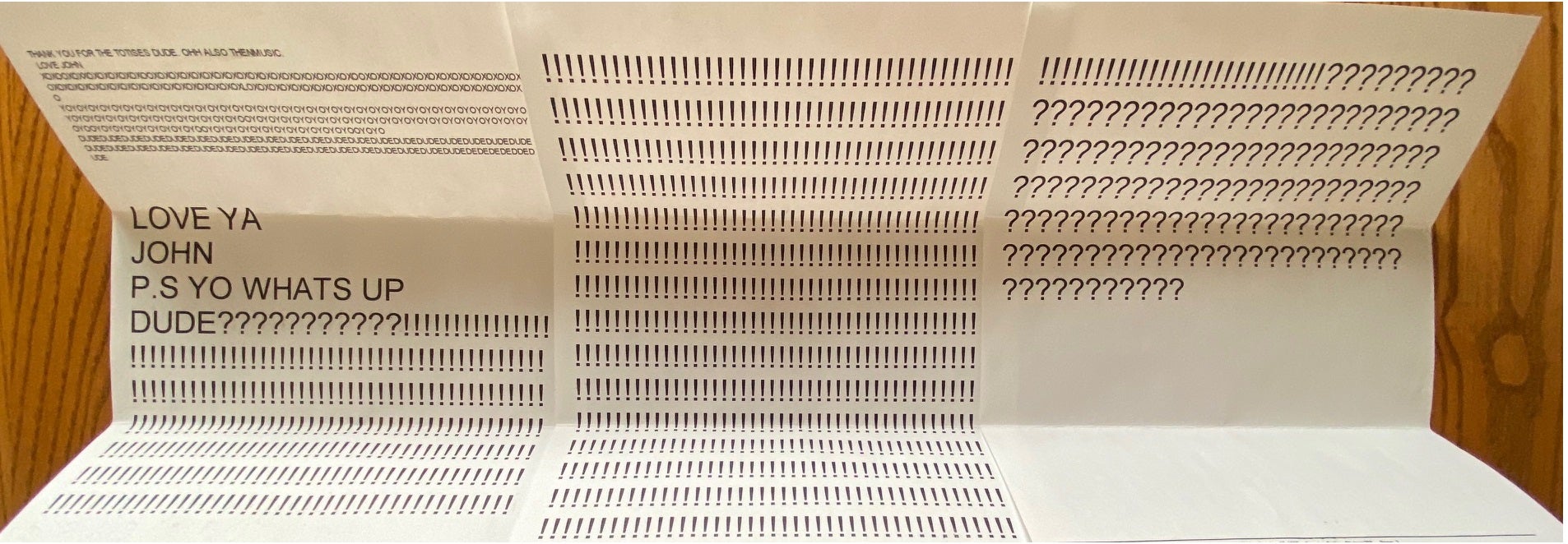A few days later, I got the check in the mail along with a separate envelope containing John's three-page note dated "Friday, October 17, 1996…
