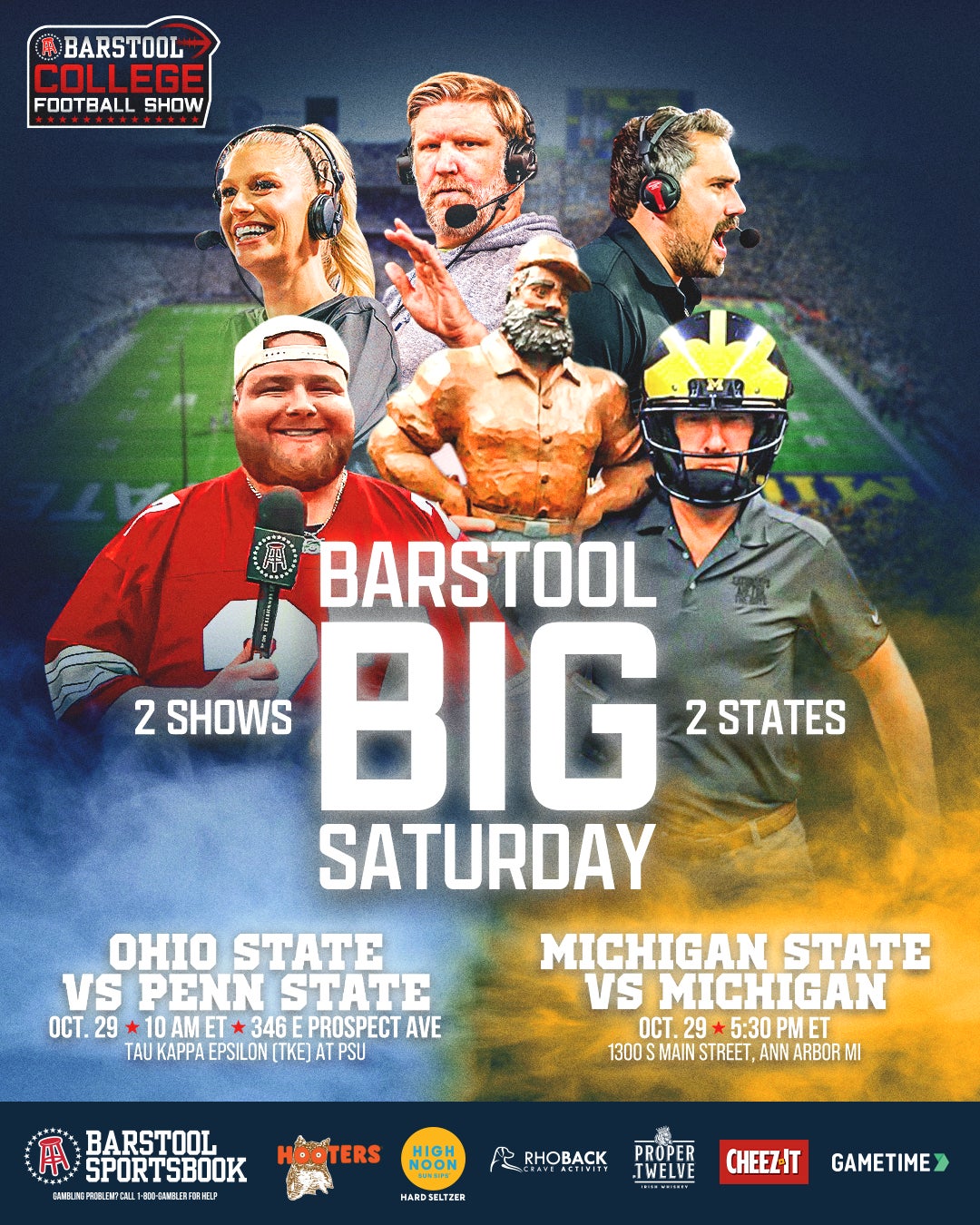 Week 9 and Barstool Big Saturday are here. My card will be on Twitter. If you're at Penn State or Michigan this weekend I expect to see you at our live shows. Anyways, here are the numbers: