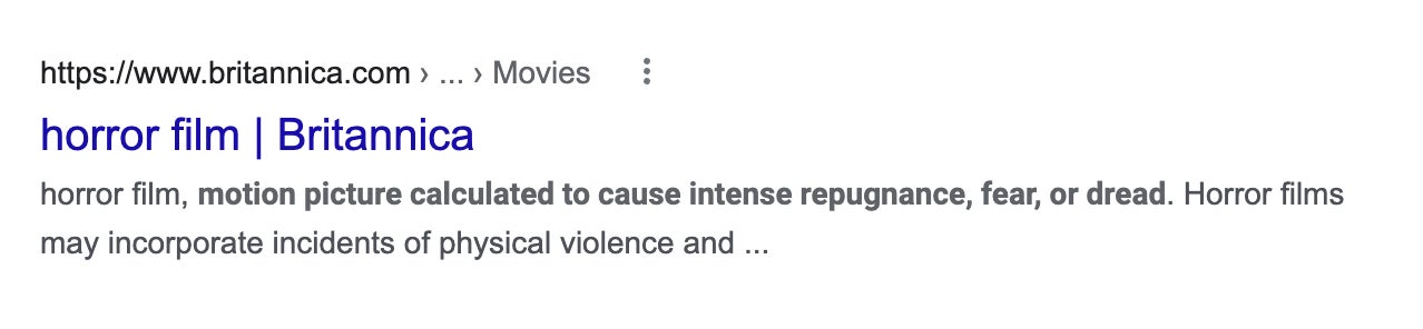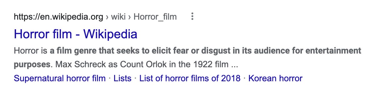 Here's how Wikipedia and Encyclopedia Britannica define "horror films":
