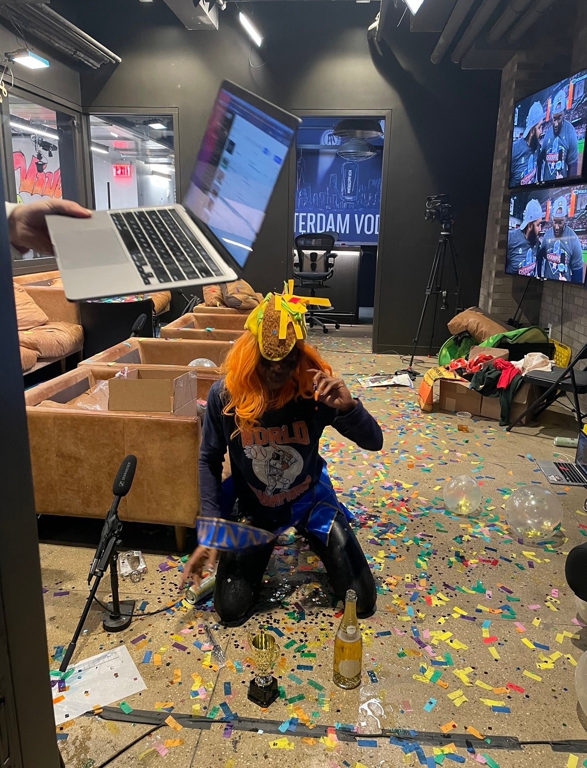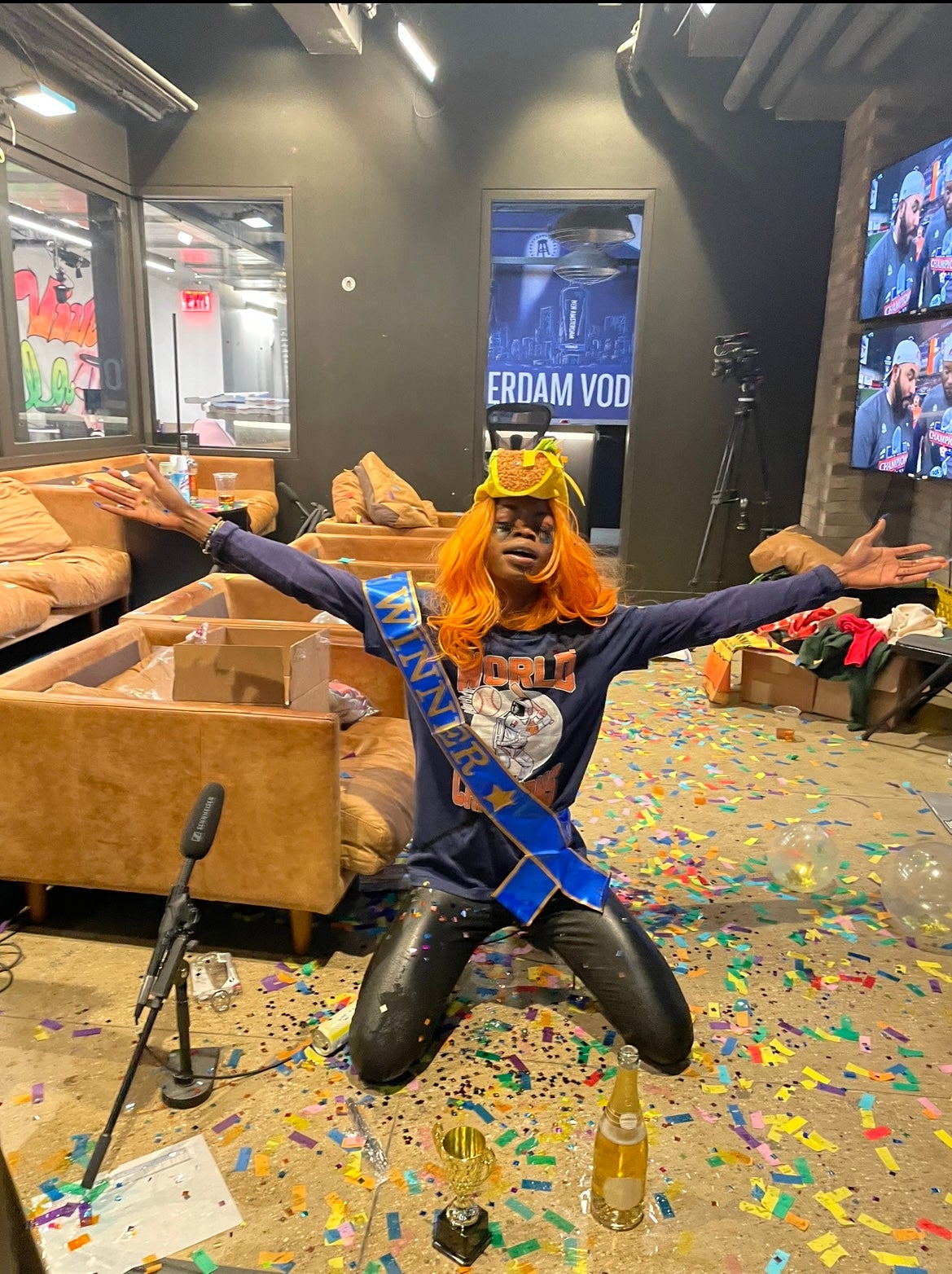 When we won, I grabbed my winner sash, trophy and crown. I felt like I was being crowned, I even started tearing up. I was overcome with emotions and forget how to talk/breathe for a few moments. I could barely get out my speech, or even pronunciate proper English, truth be told. I was HAPPY AS SHIT. My one friend had made it to the stream, and I felt bad because she had to shoot the confetti and throw balloons all by herself. She was the only friend that came, but we still got it done.