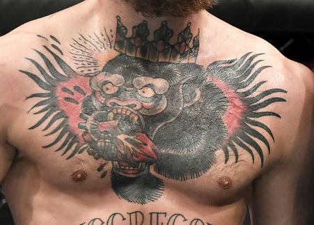 Obviously Conor McGregor's love of gorillas/monkeys has been well documented over the years - look to the big ape munchin on a heart inked on his chest if you didn't know that….