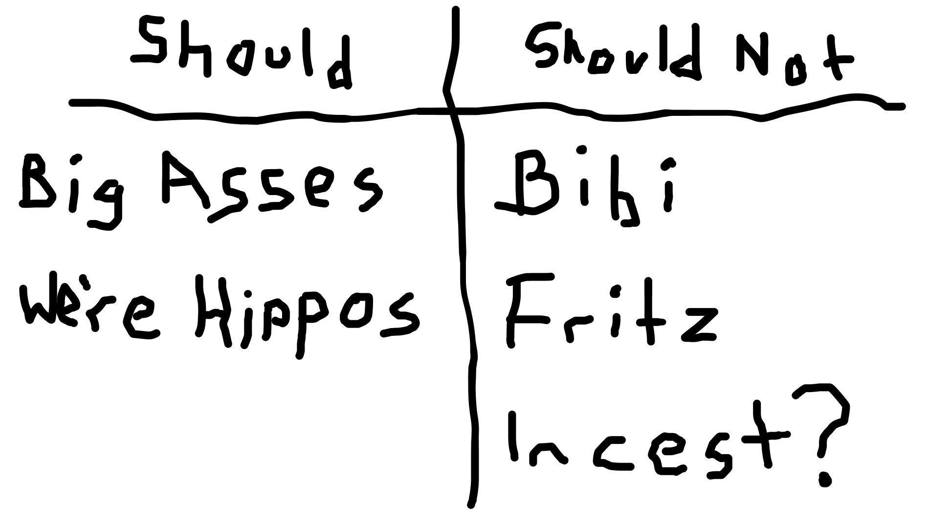 Plus, they were hippos. So who really gives a shit? One night, during their evening swim, the two hippos had an open and honest conversation regarding their feelings for one another. Tucker expressed how much he respected Fiona as a woman, and how physically attracted he was to her enormous hippo ass. Fiona told Tucker that she had never been with a man who treated her as an equal, and that she also couldn't resist his gigantic hippo ass. Being the responsible adults that they were, they put together a list of reasons to determine if they should, or should not explore a romantic relationship.