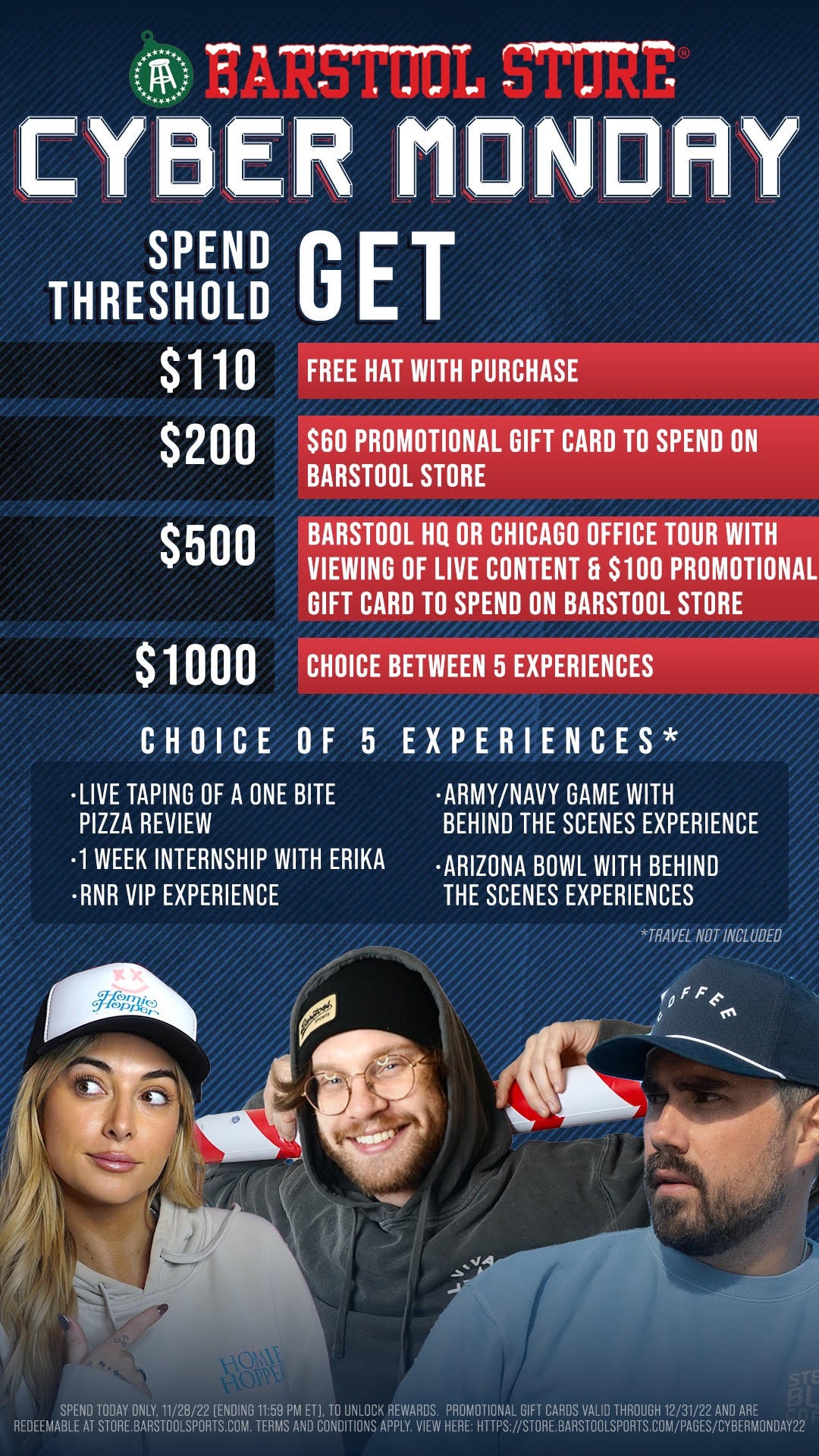 Tonight is our 7th Annual Cyber Monday Telethon. Everything at the Barstool store is 20% off all day and our livestream will start at 7 PM on YouTube, Twitter, Facebook, and the website. Our past telethons have pretty much all been punishment based. Last year, Jersey Jerry had to get dropped in the grossest dunk tank of all time. In other years, General Smitty almost got decapitated by a paintball gun. I got buried alive. A bunch of morons had to figure their way out of an escape room. But this year is different.