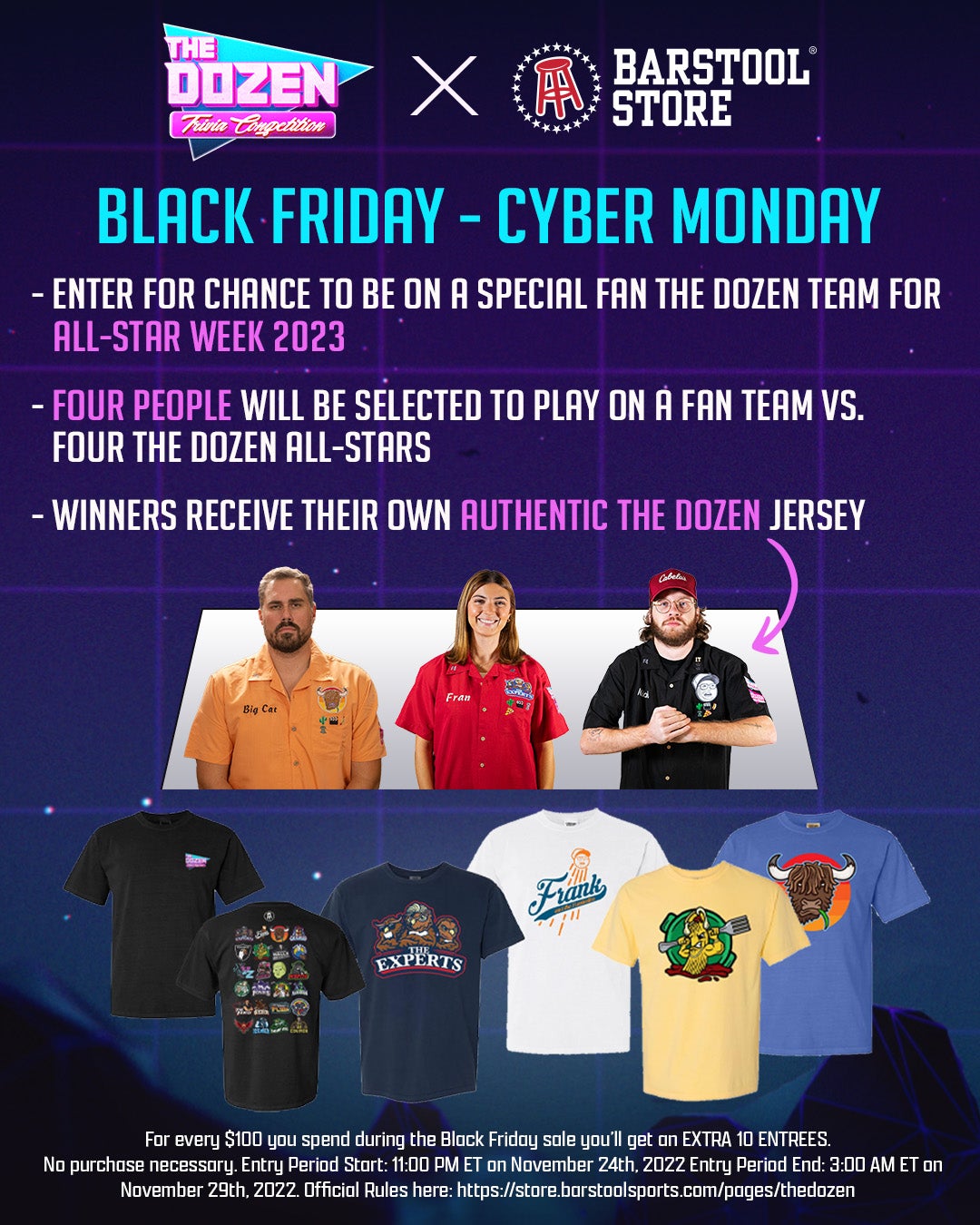 1: Click this link to enter: store.barstoolsports.com/products/the-dozen-experience-sweepstakes