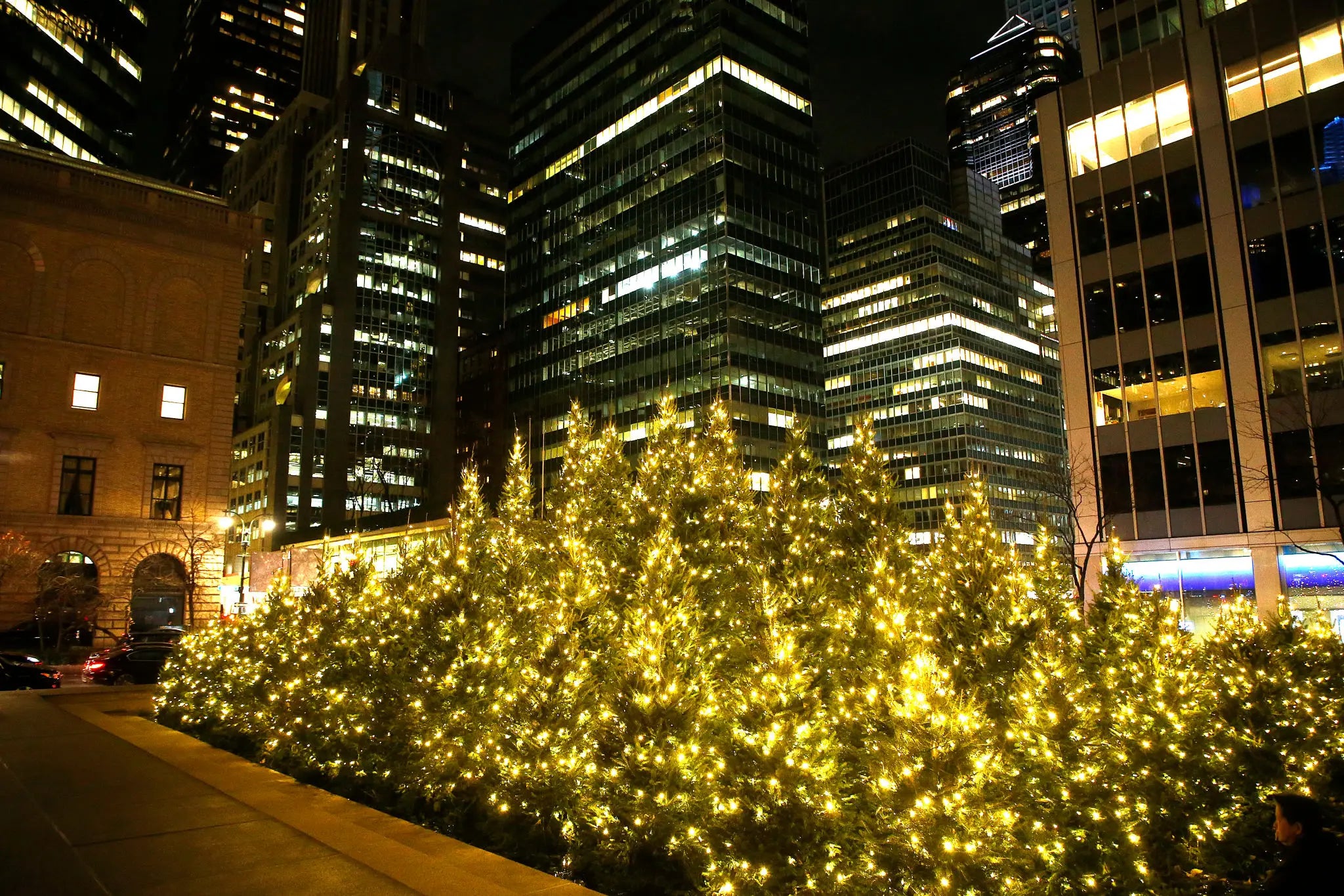 These aren't the prettiest trees in NYC but damn if they aren't the grittiest. All in, there are 104 trees decorated with white lights that line the center island of Park Avenue north of the MetLife building. This tradition started in December of 1945 as a way to honor all those who gave their lives in World War II. Today they shine bright to honor that legacy and stand as a symbol of peace.