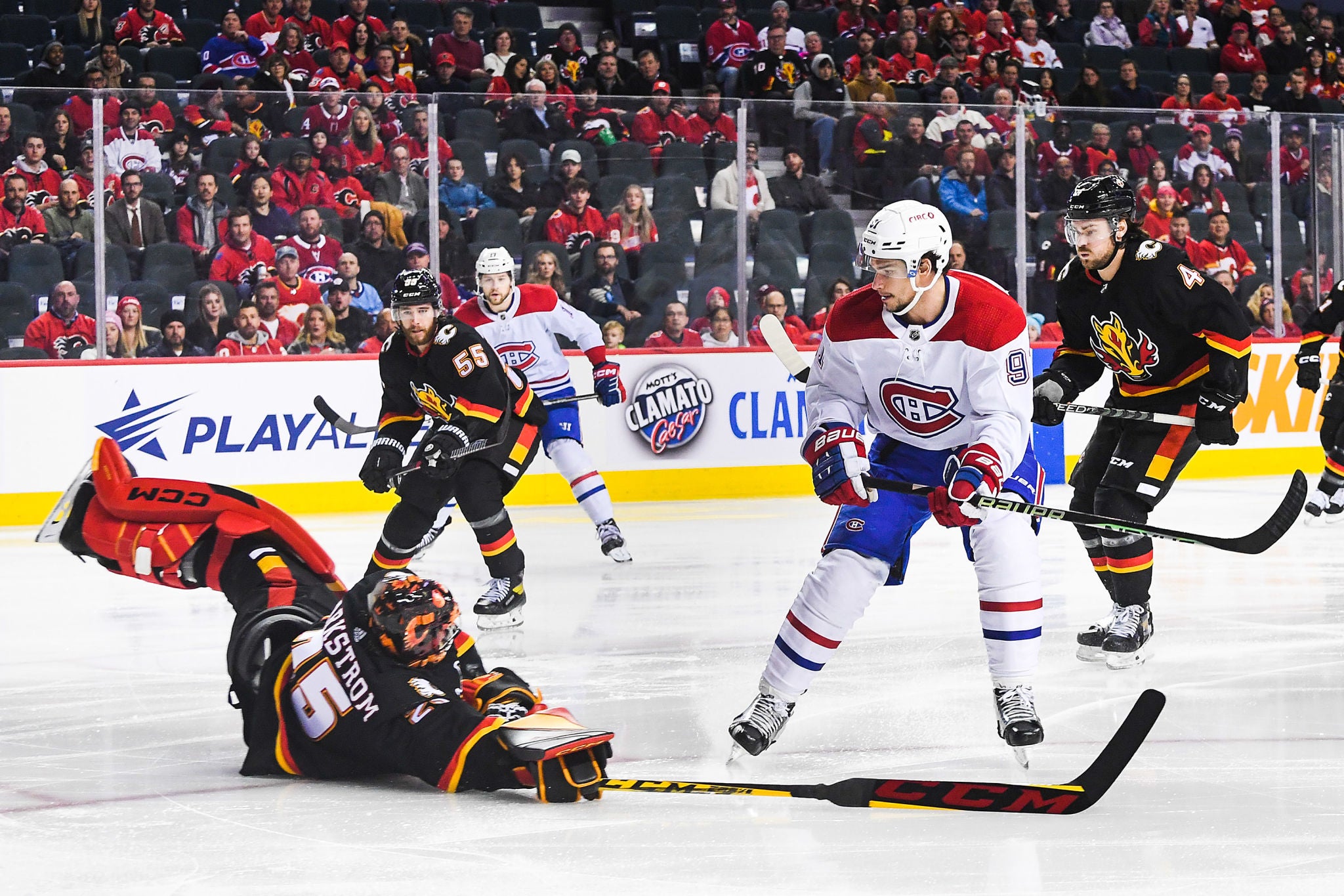 10 seconds into the game. Markstrom comes flying out of the net like a deranged lunatic. At least he stopped Monahan from scoring 10 seconds into his return to Calgary, but Slafkovsky buries it while Markstrom is still sliding past the faceoff circles. Never a good sign to see your goalie exiting the zone while you're getting scored on. Happens often with greedy forwards, but pretty rare sighting from a goalie. Hilarious. Terrible goaltending, but absolutely hilarious nevertheless.