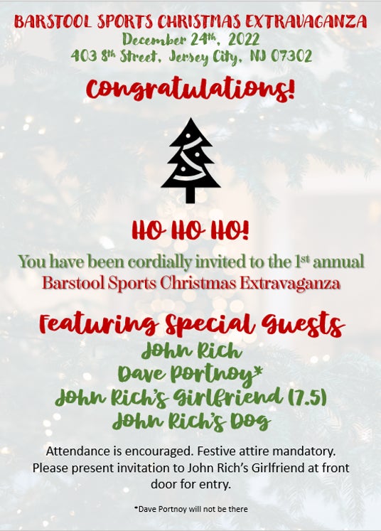 Welcome to the first ever John Rich Black Friday Promotional Christmas Blog presented by Barstool Sports. On behalf of Barstool Sports, I would like to wish everyone a politically correct Happy Holidays.