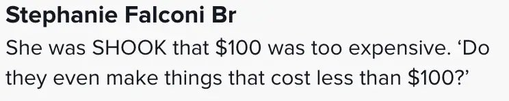 I think these comments are unfair. First off Oprah provided a gift unprompted that was within a reasonable budget. $100 isn't an outlandish response. If the man asked for gift ideas and Oprah replied with "Get her a high end watch designed for males but is so nice a woman would love it (https://brickwatchcompany.com/) " , or "take her to Bali for a week", or "get her a vintage Mercedes" it would be very clear she was completely out of touch. Instead Oprah provided a reasonably priced item.
