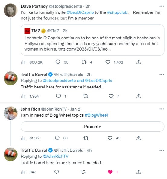 A Peek Inside The Traffic Barrel Twitter Account Who Provides Assistance To All Of The Internet (Blog Wheel)