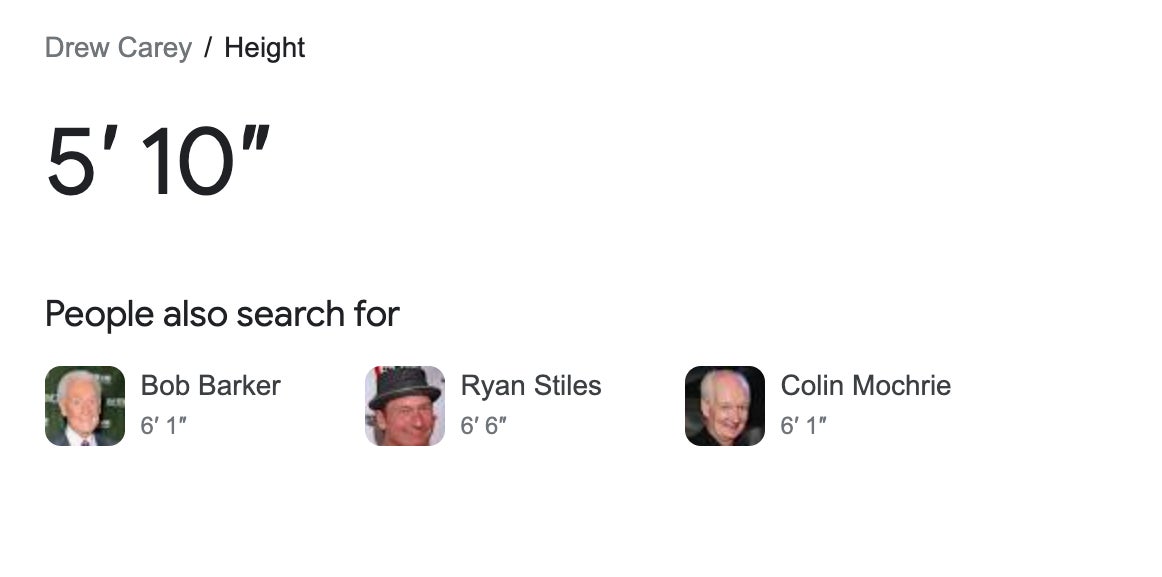 What in the name of Aaron Judge and Jose Altuve is going on here? I know a bunch of celebs are lowkey tiny people but you never realize due to the magic of Hollywood and camera angles can be a motherfucker for anybody, especially when the guy playing that angle is 6'11. But I always thought that Drew Carey was tall enough to not be considered short. According to the Google machine, Drew Carey is a respectable 5'10, which is the same height as some of the content titans here at Barstool (who may or may not have had some bad angled pictures taken of them).