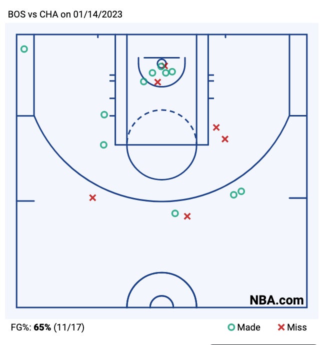 No, the Hornets bullied the shit out of the Celts defense. They lived in the paint to the point where 18 of their first 34 points came from that area. In fact, the Hornets killed them all night from the paint finishing with 60 points. That's way too many for a team that had almost all their plus defenders.