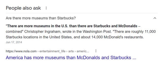 Assuming that museum statistic is accurate, I'm thinking America needs to re-evaluate what qualifies as a museum. I have a hard time believing that an average of 700 places per state are worthy of museum status. The percentage of them that are profitable has to be insanely low. Is that where my tax dollars are going? To museums? Thanks Biden..