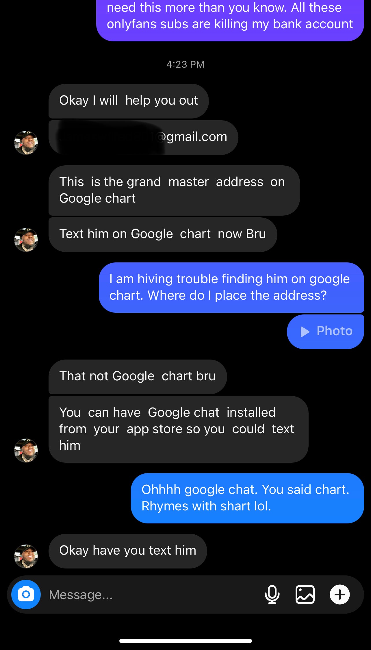 But the google chat thing wasn't the only problem. It also seemed he gave me the wrong email for the grand master.
