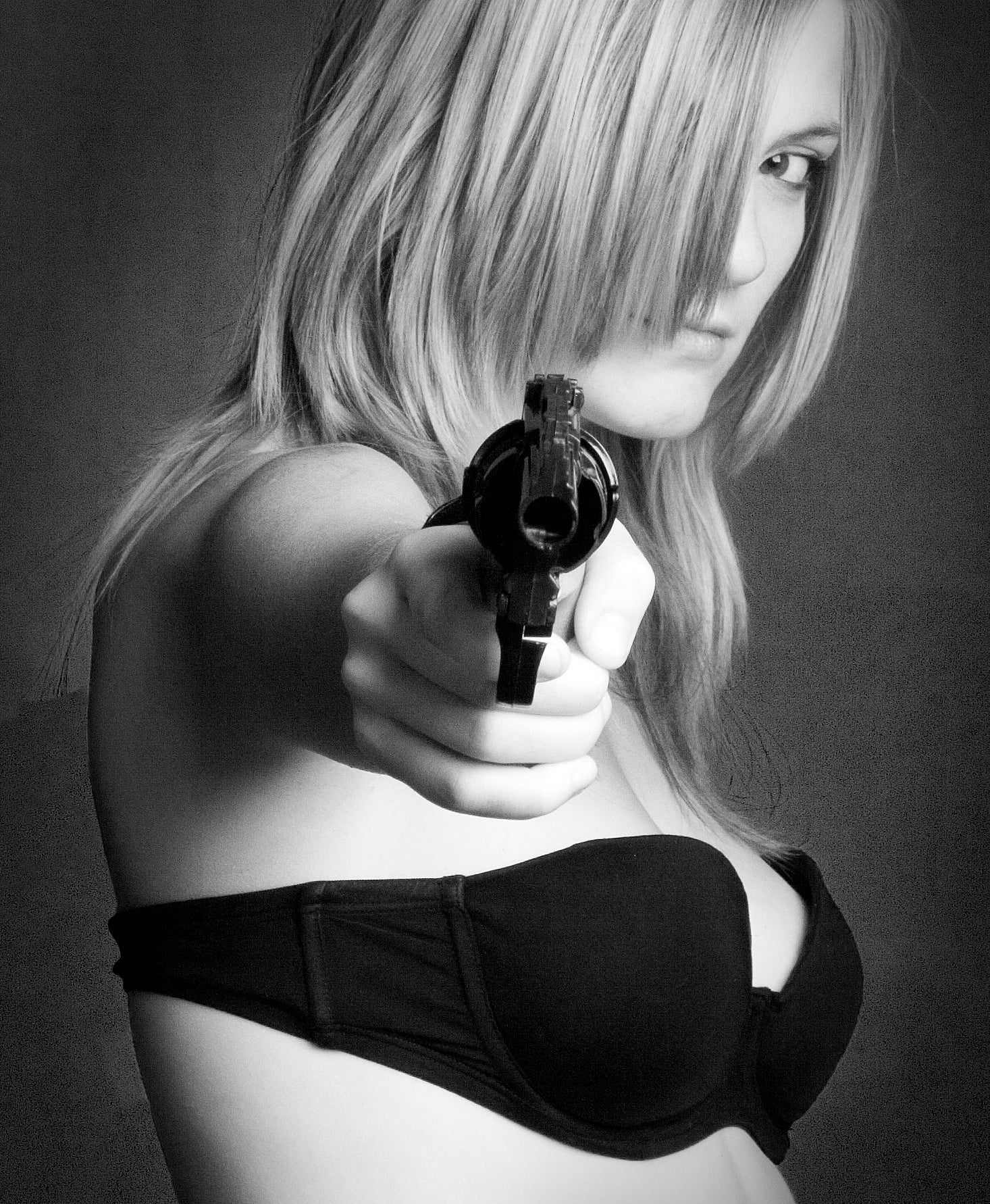 Then, she turned her attention to a male patron sitting on the floor nearby and pointing her revolver directly at him, asked if he had seen her face…