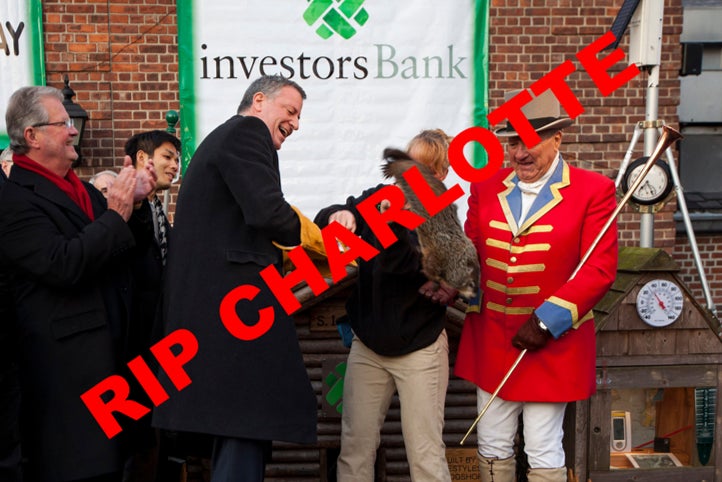 And I know what you're thinking, "Wasn't Staten Island Chuck brutally murdered in 2014 by Mayor Bill DeBlasio." I thought the same thing. But apparently that was an animal named Charlotte, who was maybe a hedgehog (?), and was merely filling in for Chuck. They must have forgotten to give Charlotte the magic elixir.