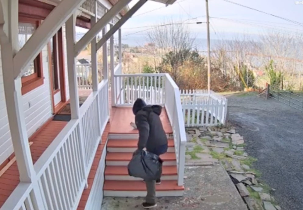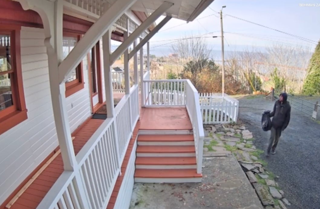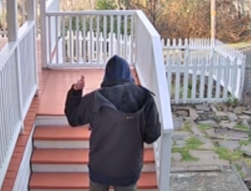 Last Wednesday a security camera at The Goonies house in Astoria, Oregon captured a strange sight. A man walked up to the home, reached into the garbage bag he was carrying, pulled out a single dead fish, and placed it on the porch. Then he flipped off the camera backwards (fancy!) as he got his phone out to record what'd he'd done, danced around the property a bit and then dipped out.