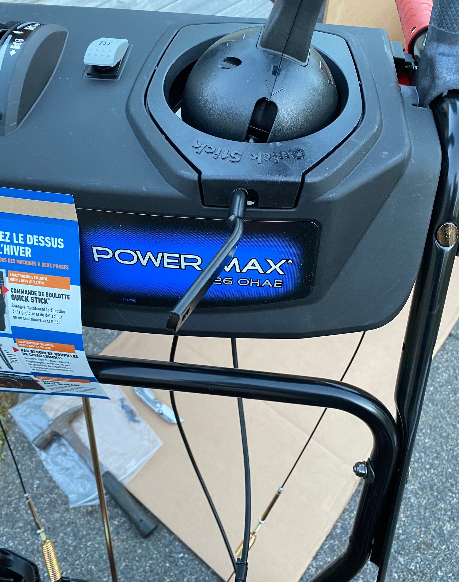 When I started removing the snow blower from the box, I noticed the part that came out of the quick stick was bent right where the hole in the box was. I wasn't totally sure it was damaged yet. I thought maybe it was supposed to be bent, so I took it out and attempted to put it together…