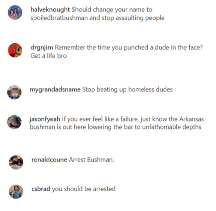 Maybe the Bushman was getting recognized a little too often and was running out of targets. Maybe he thought a homeless man wouldn't be familiar with his game. Or maybe views were down and he just wanted to ramp it up a notch. The Bushman is lucky that he didn't lose a branch. He lived to tell the tale, but it was a fatal mistake for his career as a content creator. His last post was made was in October 2021. Sadly, the fans who had once revered the Bushman as the greatest prankster in all of Arkansas, appear to have turned on him in a major way.