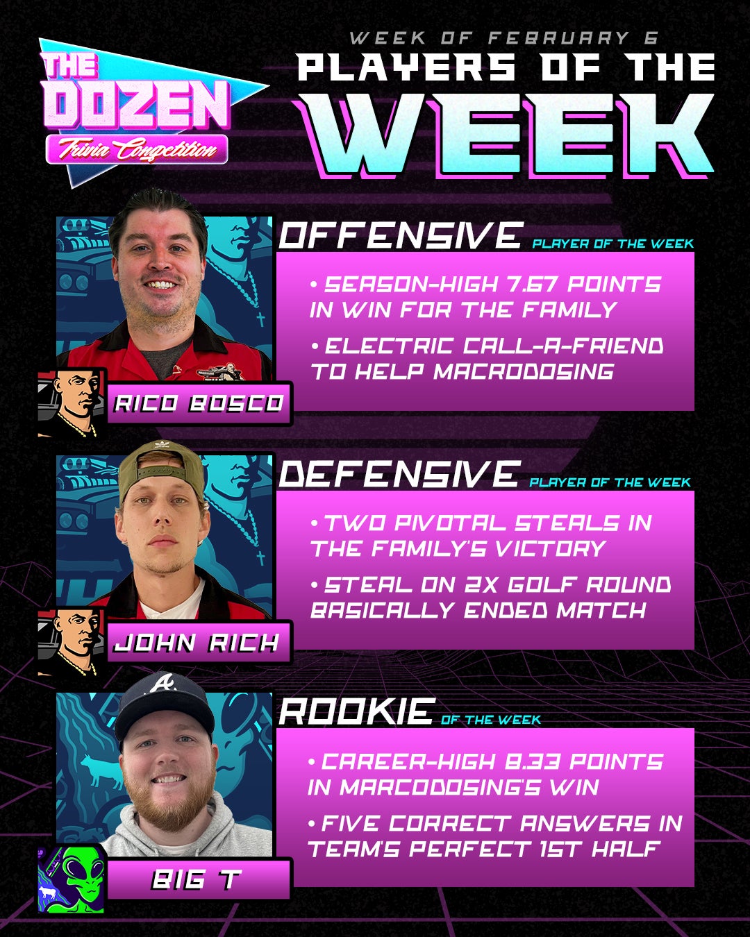 Defensive Player of the Week goes to John Rich. Stealing a Doubled Golf question from Foreplay put an absolute dagger in their souls that they may never recover from.