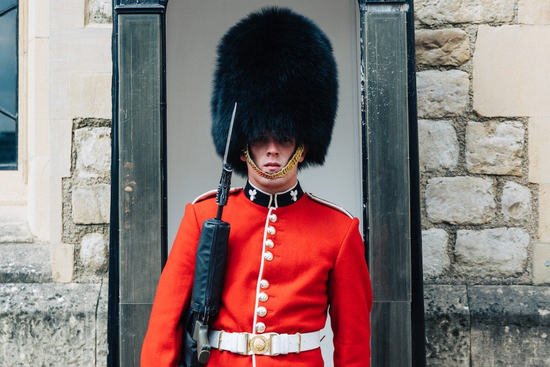 The King's Guard strikes fear in the hearts of any man or woman who dares to breach the walls of Buckinham Palace. The large intimidating hats that look like fuzzy black dicks help make up for the fact that their guns aren't loaded, and that they aren't allowed to move under any circumstance.
