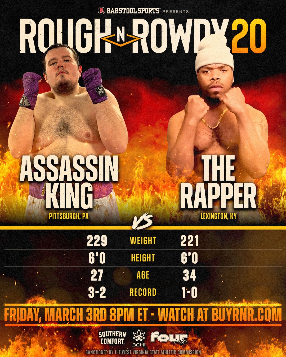 You can get our RNR20 predictions in our next episode of REF N' ROBBIE dropping on Thursday right before I'm hosting the Four Loko Weigh-Ins. It's a STACKED card on March 3rd with a Vicky D vs Cherry Bomb main event, heavyweight champ Lights Out vs middleweight champ Make It Happen, 2 brick shithouses going for the Super Heavyweight belt, The Abels + Hot Wheelz + Irish Dave Portnoy + that bastard Big Dick Booty Daddy + Diamond Hands returning, and plenty of (0-0) West Virginia locals trying to knock some skulls off.