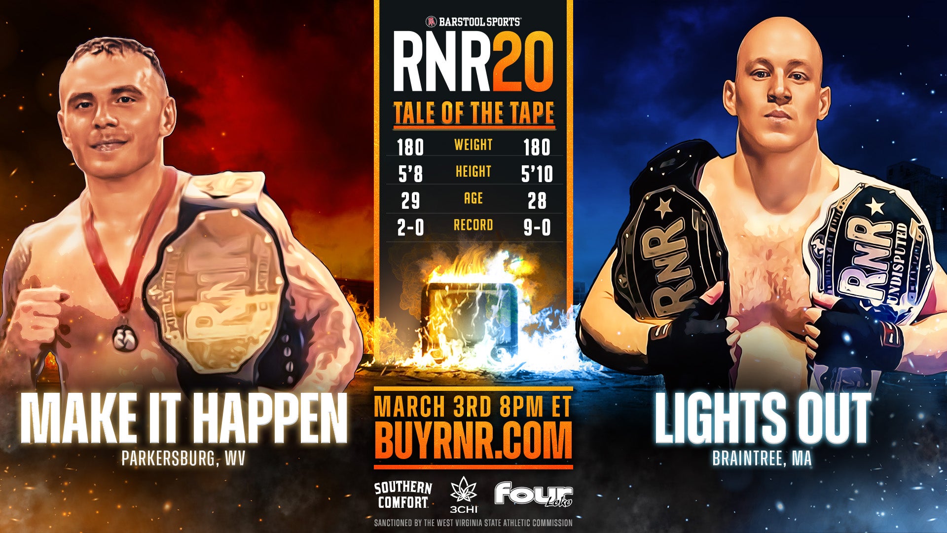 That's a deeper look into the grand finale but at the end of the day let's be real, EVERY brawl at RNR20 is a main event. Order on BuyRNR.com for 20 fights, 3 title belt brawls, ring girl contest hosted by Jerry Fragrance + Large, whole commentary team of Dave Portnoy, Big Cat, Robbie Fox, Caleb & Rone, AND MORE.
