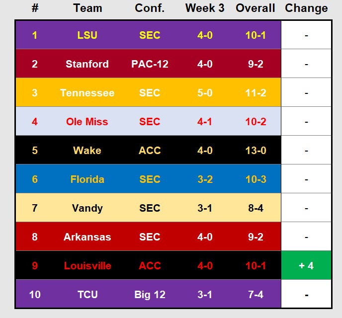 Not a ton of movement and by Not A Ton, I obviously mean only Louisville has made a move in the top 10. Whatever. A lot of people say these don't matter. Well those people have decent college basketball teams to cheer for. Most of the baseball crowd is just looking to scratch the itch on the message boards. And boy were they humming this week with some early action