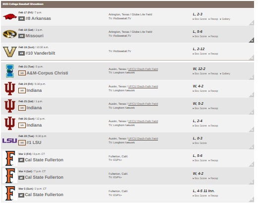 They only play heavy hitters on the schedule. That's why I love Texas baseball so much. They do not back down early in the season.