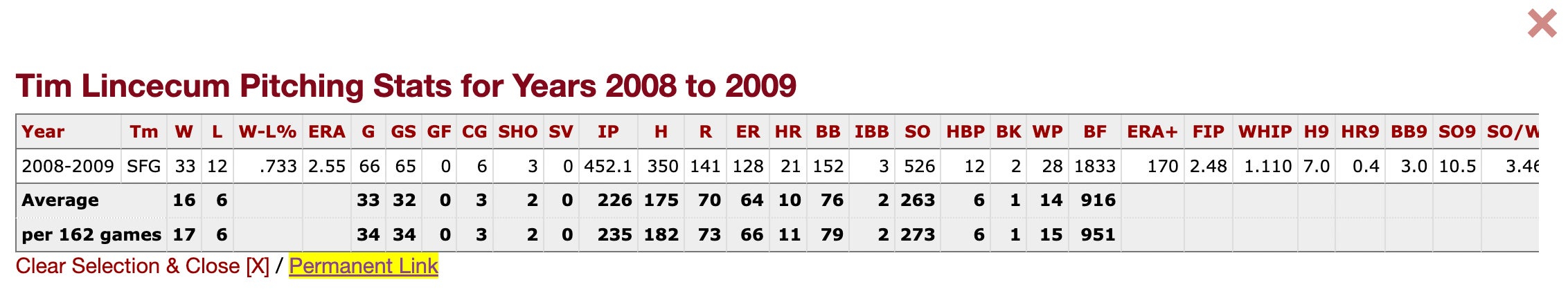 Nuts meet table. There's no better way to prove your worth than bringing in the hardware that shows you're the best in the whole goddamn business. Those first two full seasons for Timmy were something else. We're talking the undisputed best pitcher in all of baseball. Pure dominance. A changeup that would put holes in your bat on a daily basis. Freak show stuff every single start.