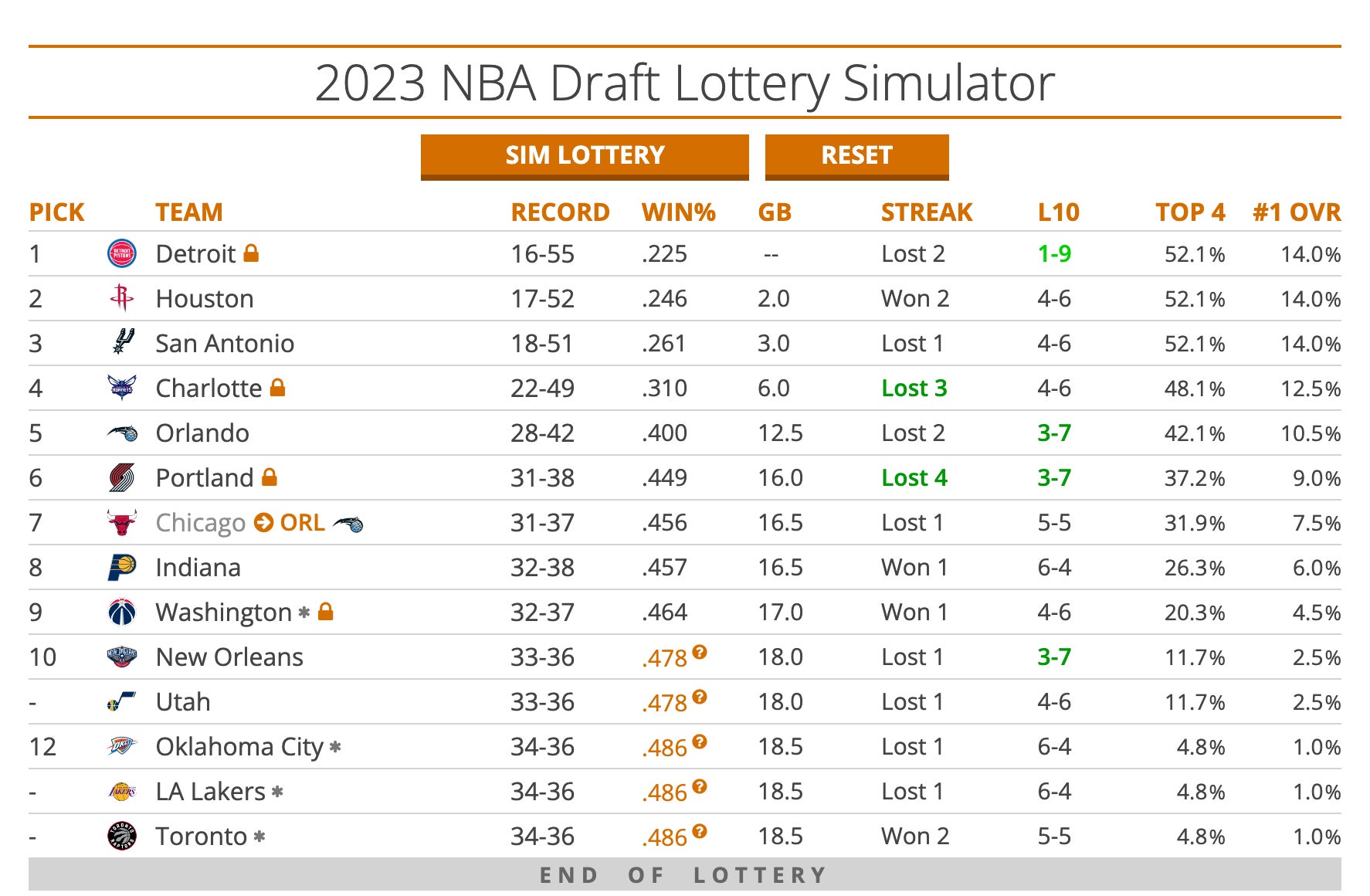Also, if you'll allow me to put on my tin foil hat for a second, I can't help but notice what's currently going on in the race for Wembanyama. Let's have a look to see where the Hornets currently sit