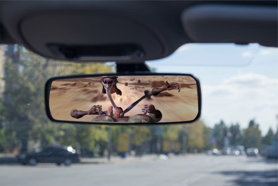 Glass shatters and you see the four armed alien flying through your rear window, and slamming into yours.