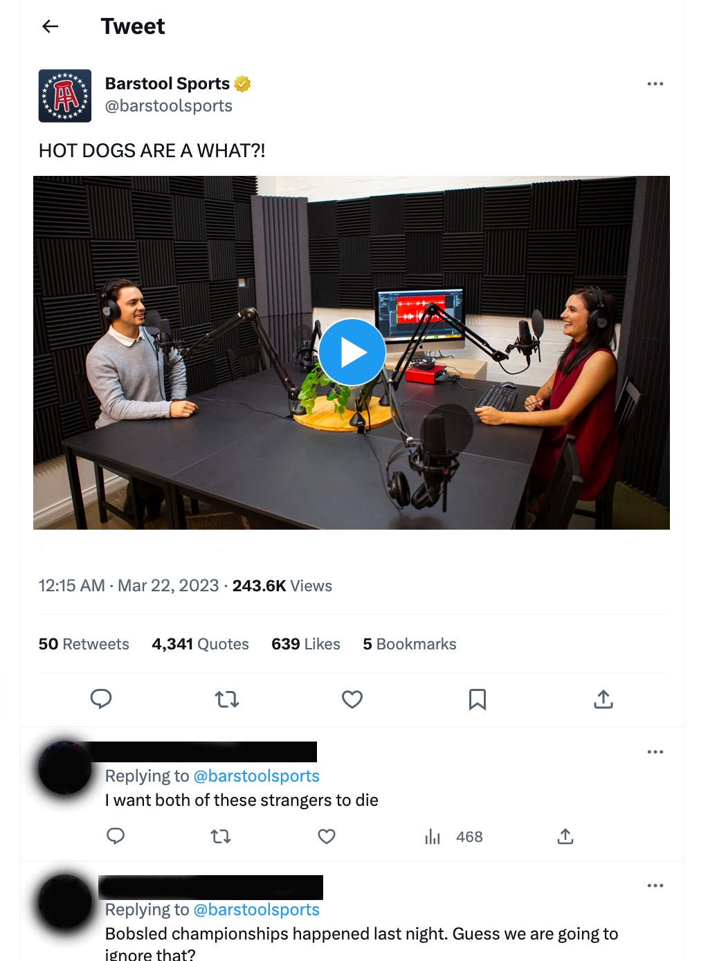 "Why wouldn't I?", your cohost snaps back aggressively. You nod to your producer to start recording, and continue the debate.