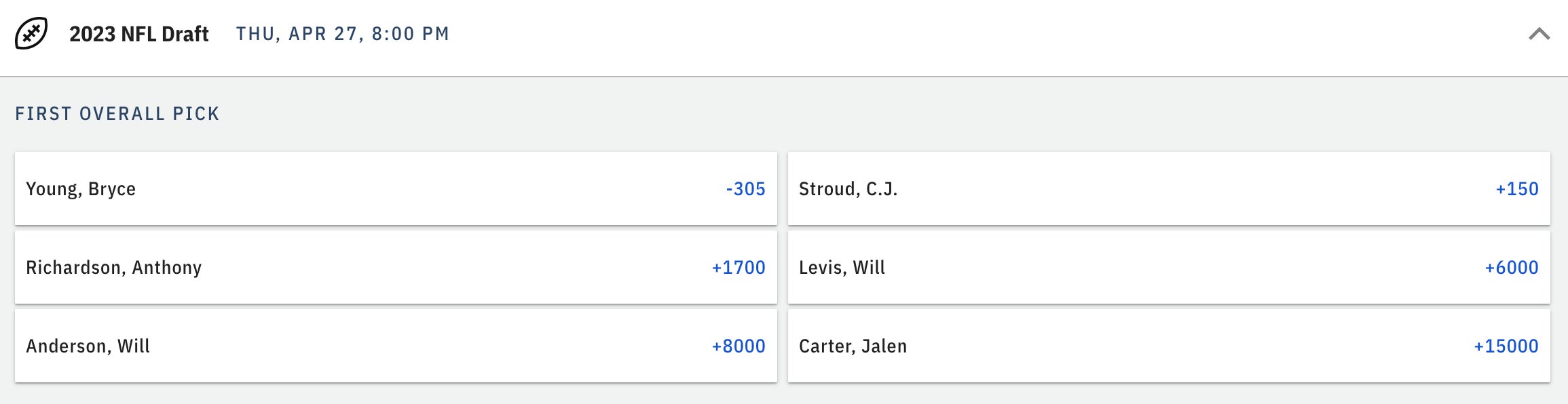 Might it have something to do with the fact that multiple reports are now linking Bryce Young to Carolina as the favorite to hear his name called first on draft night? Because after C.J. Stroud was a prohibitive favorite to go No. 1, the odds have shifted heavily in favor of the Alabama field general.