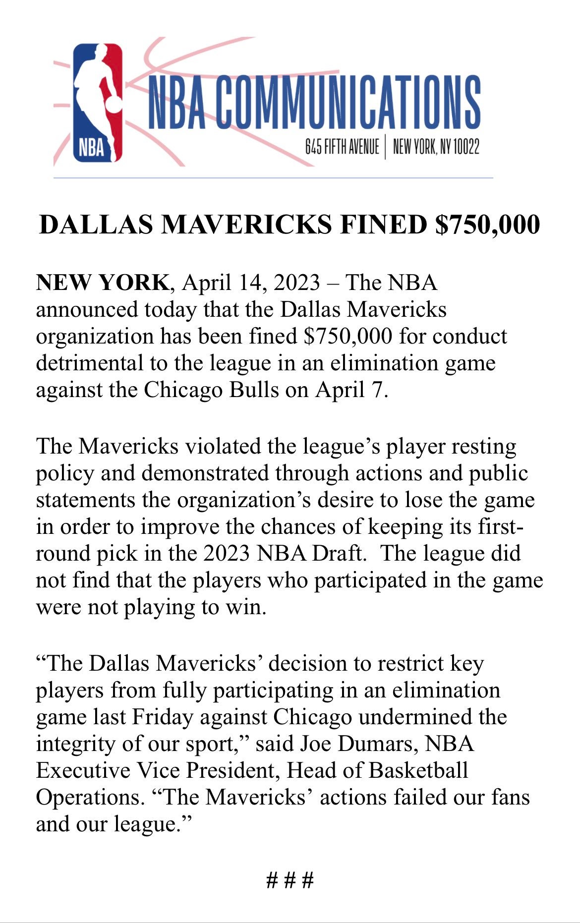 The NBA Decided To Fine The Dallas Mavericks $750,000 For Their Blatant Tanking To End The Season