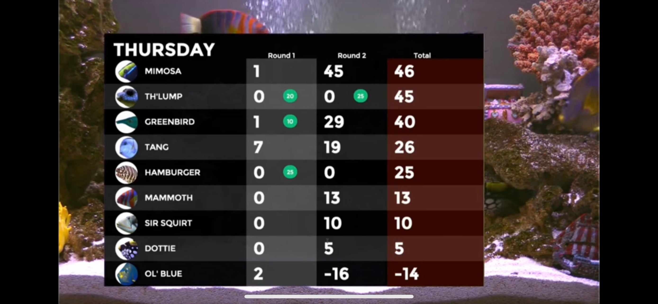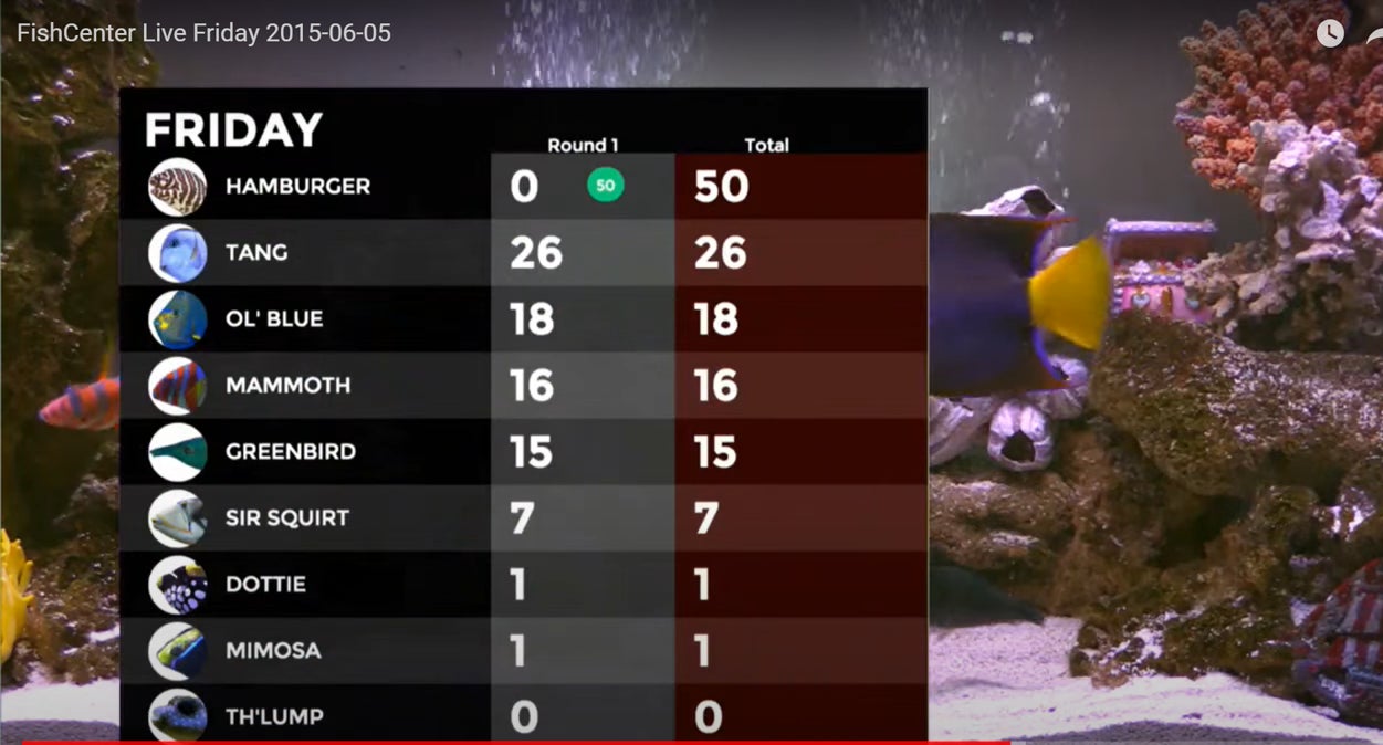 - A fish named Hamburger won the coin challenge. I'm regretting my decision to try and do a play by play of this. This can't possibly be a good read.