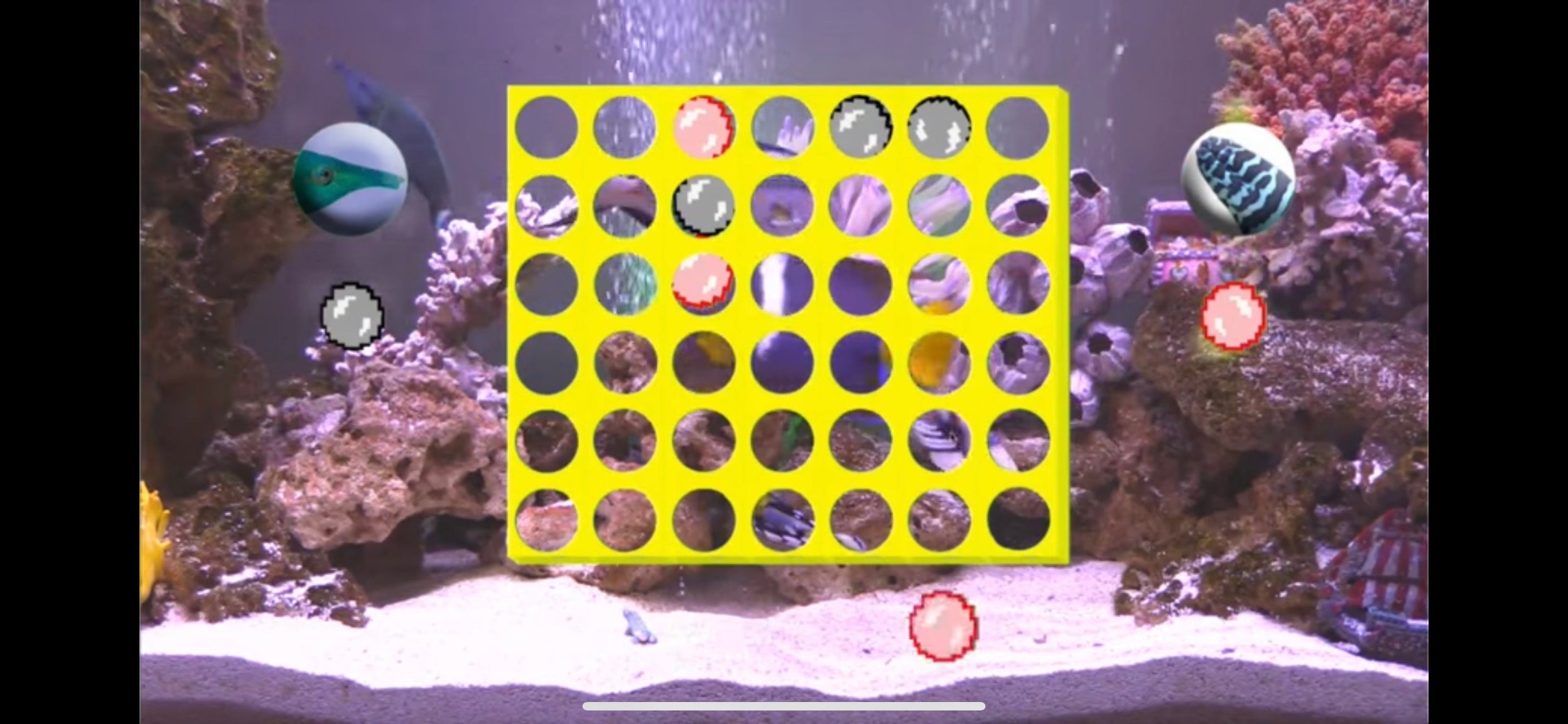 - After the competition, the sounds cuts out for about 10 minutes. When the sound comes back, there are 2 fish in the middle of a game of Connect 4. I never had the rules of Connect Four explained to me (due to the sound cutting out), but it appears they're chose 2 fish, and every time a fish swims behind the Connect Four board, they play a piece at random.