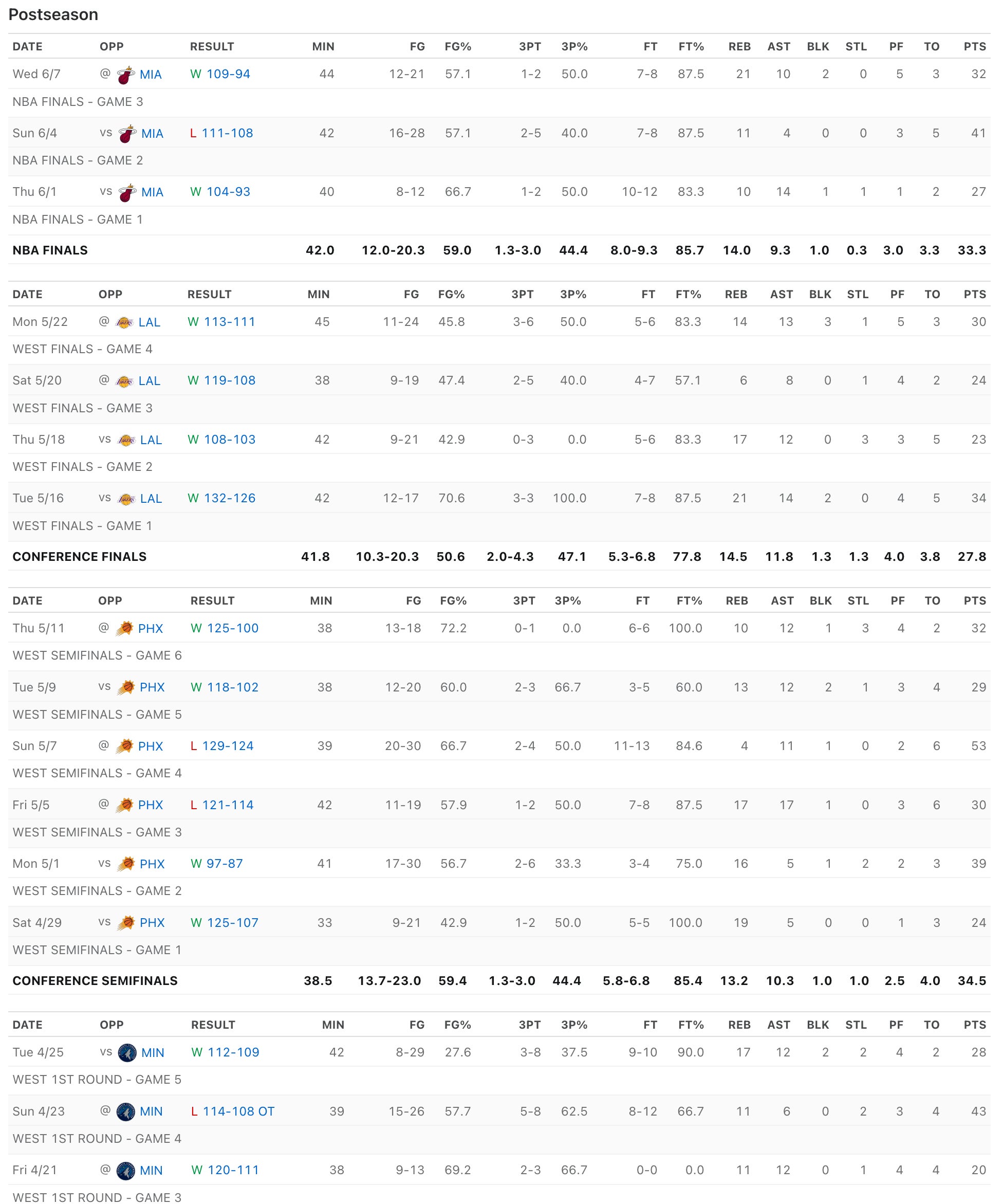 This is basically prime Shaq level dominance but then also adding an all time passing ability. We should probably be making a much bigger deal about what Jokic is doing this postseason, and he's now two wins away from securing a ring.