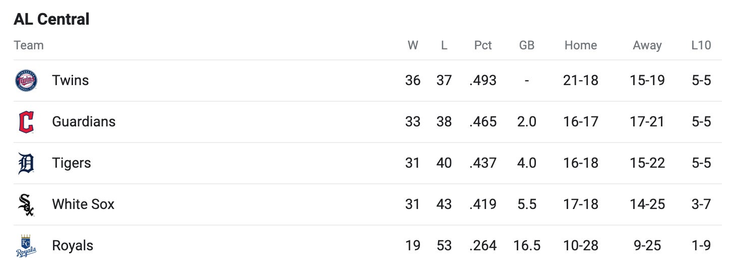 The AL Central is a giant steaming pile of dog crap and the Guardians are a silver dollar the dog accidentally ate. They're still super crappy but they're the only team that would be worth anything come playoff time.
