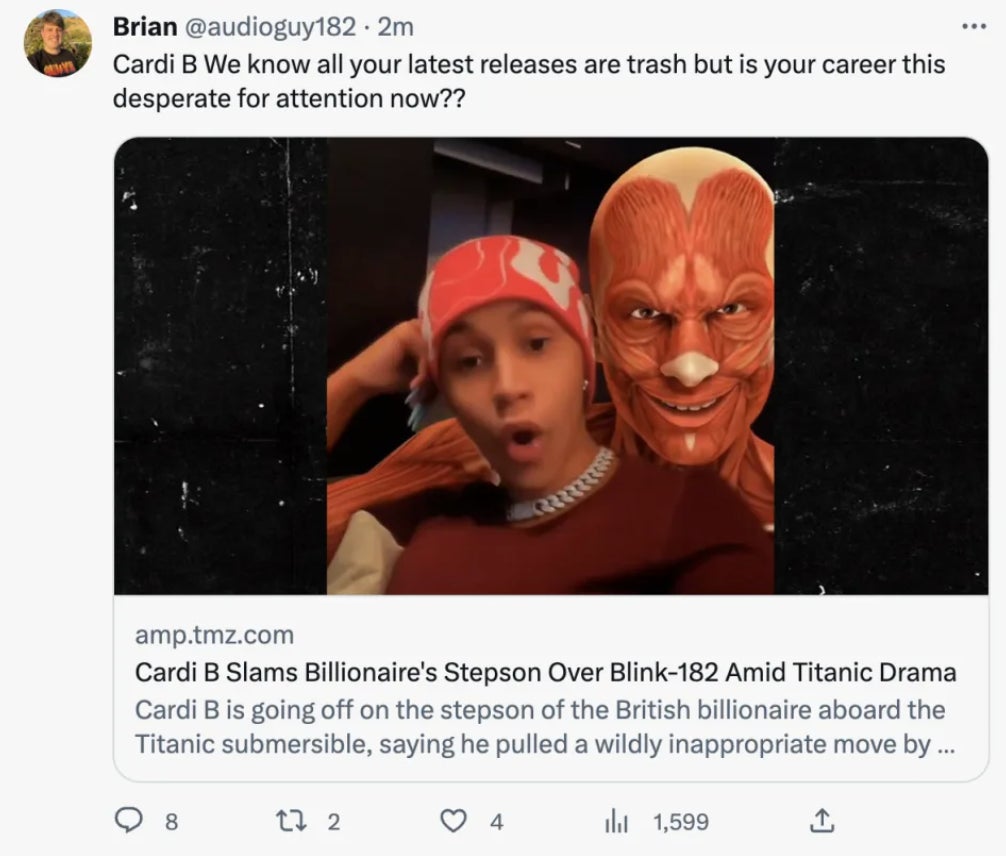 He continued in another tweet, “Cardi B we know all of your latest releases are trash but is your career this desperate for attention now??”